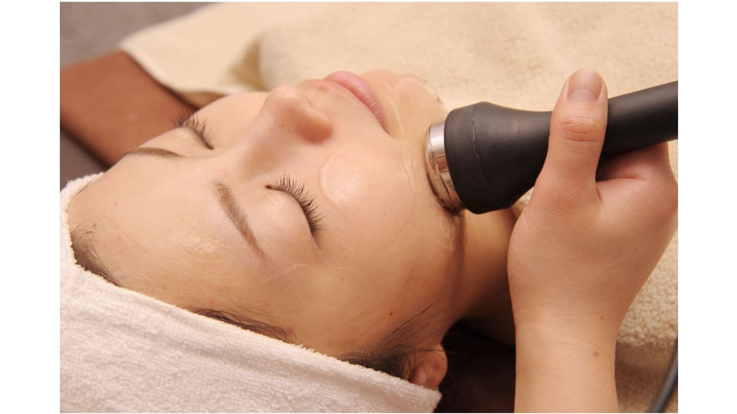 超音波で顔のむくみ を取り、少し強めの小顔マッサージで、 キュッと小顔に。